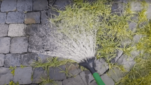Gorąca woda niemal natychmiast niszczy chwasty. Idealnie nadaje się do czyszczenia narożników wokół bramy wjazdowej i schodów lub części zakurzonych i zabrudzonych. Ostrożnie polej gorącą wodą niechciane rośliny. W przypadku roślin z głębszym korzeniem może być konieczne powtórzenie tego procesu.
