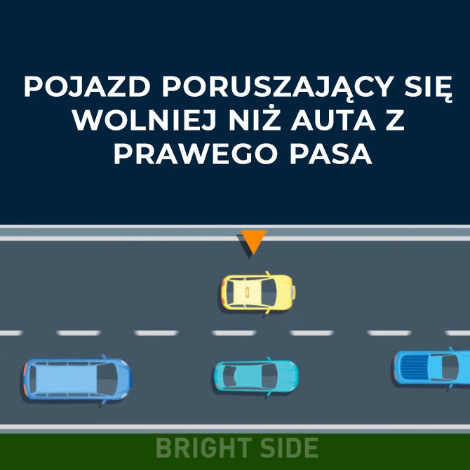 Wielu kierowców uważa, że lewy pas jest do wyprzedzania i szybszej jazdy. Pamiętaj, jeśli chcesz jechać ze stałą prędkością np. 50 km/h w miejscu, gdzie dozwolona jest prędkość 70 km/h, nie blokuj przejazdu innym kierowcom i zjedź na prawy pas. Powolna jazda lewym pasem może spowodować wypadek, ponieważ inni kierowcy, którzy chcieliby Cię wyprzedzić muszą minąć Cię prawą stroną, co może spowodować kolizję z innym pojazdem jadącym prawym pasem.