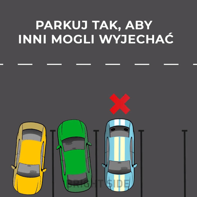 Nie zasłaniaj widoczności i nie utrudniaj wyjazdu innym kierowcom. Zawsze parkuj w wyznaczonych liniach.