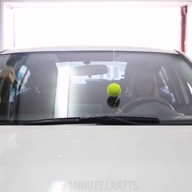 Jeśli masz problem z parkowaniem w garażu i już zdarzyło Ci się wjechać w ścianę budynku, zamontuj przy suficie piłeczkę tenisową. Wymierz bezpieczną odległość, zrób otwór w suficie i umieść piłeczkę na długim sznurku. Parkując piłeczka powinna lekko uderzyć o przednią szybę dzięki czemu będziesz wiedzieć, że jesteś w wystarczającej odległości od ściany.