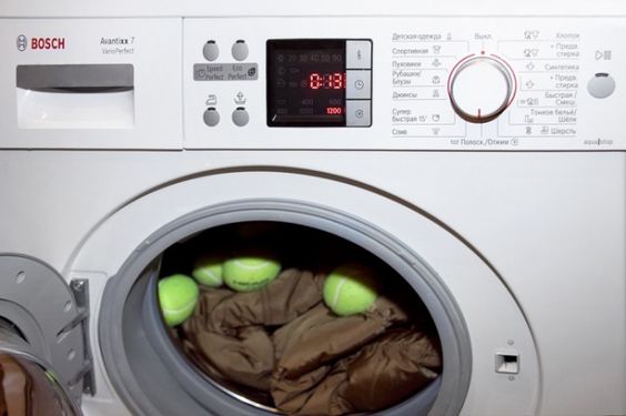 By zachować kształt kurtki podczas prania, należy włożyć do nich piłki tenisowe.