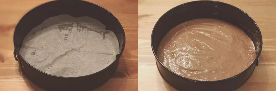 2.Na blachę połóż papier do pieczenia lub wysmaruj masłem. Dokładnie na blachę przelej ciasto.