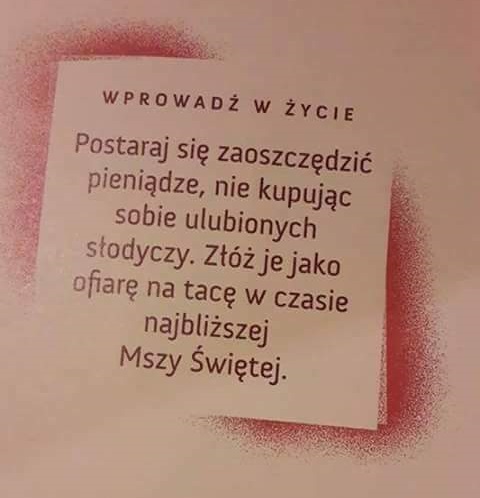 Wskazany fragment jasno mówi, żeby dzieci nie kupowały sobie tego, na co mają ochotę, tylko pieniądze przeznaczyły na niedzielną tacę w kościele